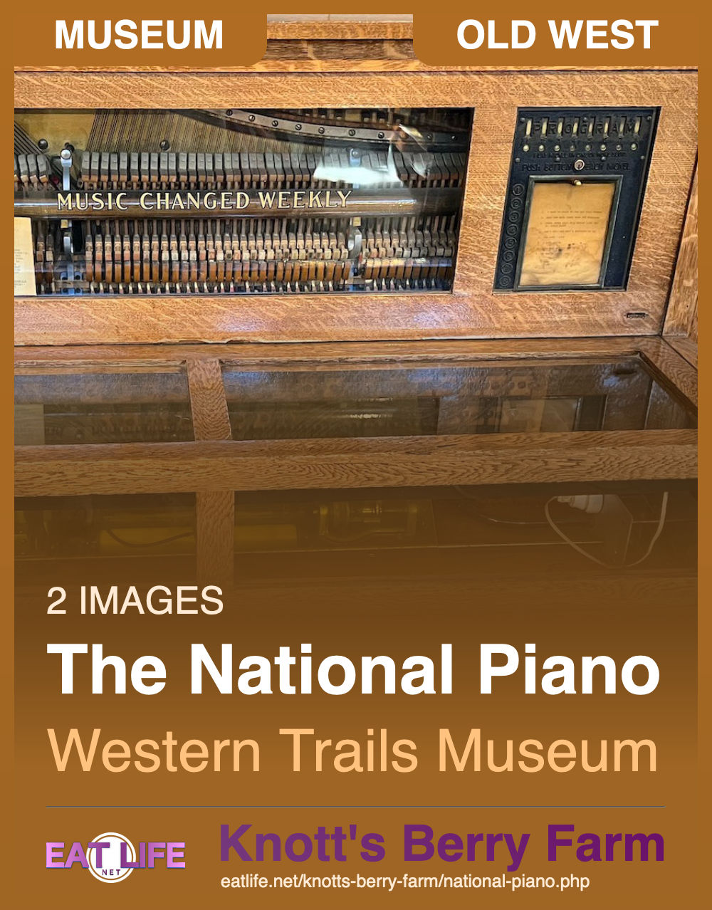 The National Piano has eight tunes that originally could be selected individually. Today due to the high volume of use it had to be converted to an outside coin box.